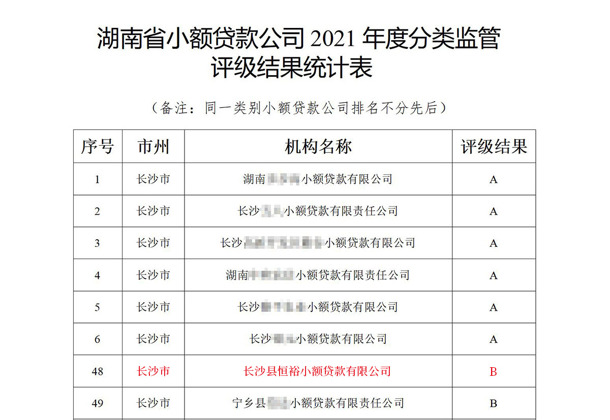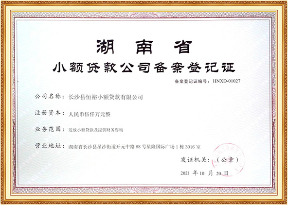 長沙縣恒裕小額貸款股份有限公司于2021年3月15日設立,經營范圍主要為家電批發零售流動貸款;國家政策允許的農村家電消費貸款;“三農”和中小企業需求的金融業務;為中小企業發展、管理、財務等咨詢業務及其他經批準的業務。多年來,一直被湖南省金融辦監管評級為B級資質單位。