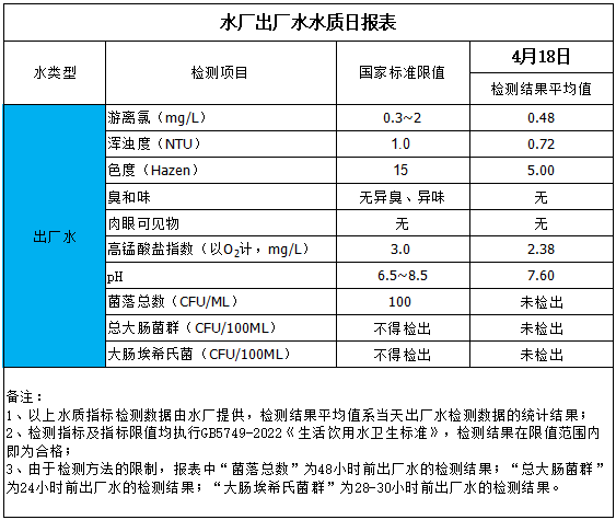 水廠出廠水水質(zhì)日報表(2025-4-18)