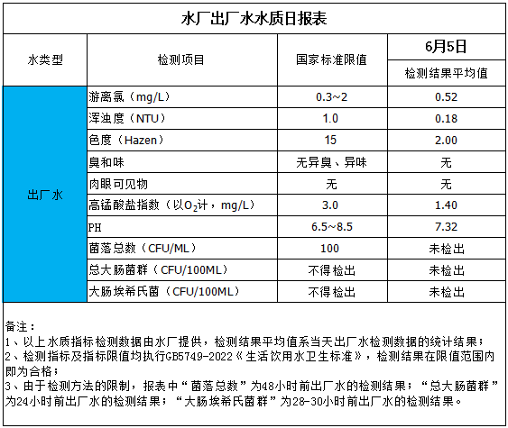 水廠出廠水水質(zhì)日報表(2025-6-5)