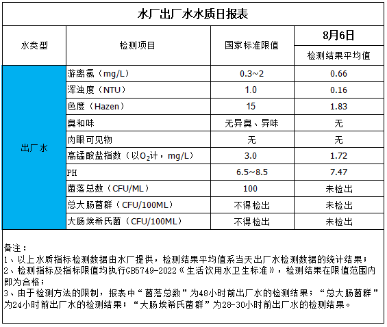 水廠出廠水水質日報表(2025-8-6)
