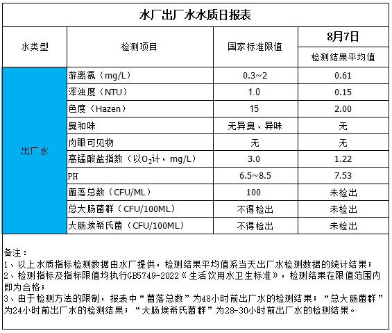 水廠出廠水水質日報表(2025-8-7)