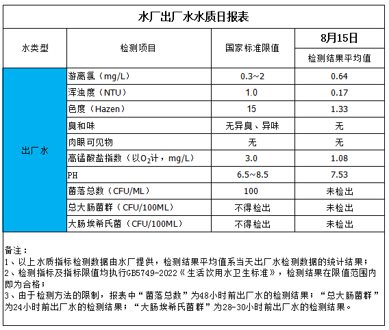 水廠出廠水水質(zhì)日報表(2025-8-15)