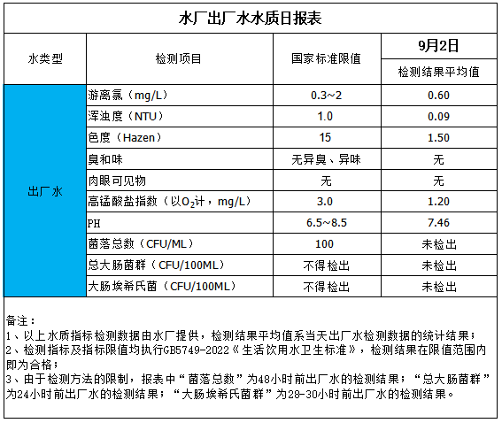 水廠出廠水水質日報表(2025-9-2)