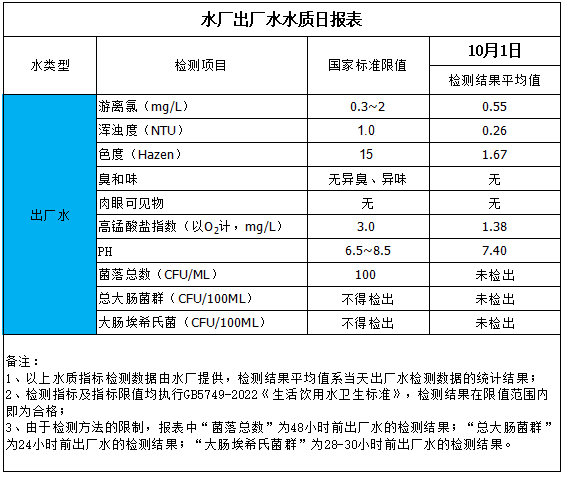 水廠出廠水水質(zhì)日?qǐng)?bào)表(2025-10-1)