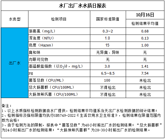水廠出廠水水質(zhì)日報(bào)表(2025-10-16)