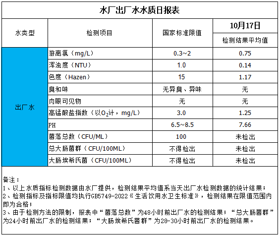 水廠出廠水水質日報表(2025-10-17)