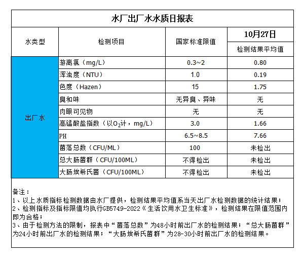 水廠出廠水水質日報表(2023-10-27)