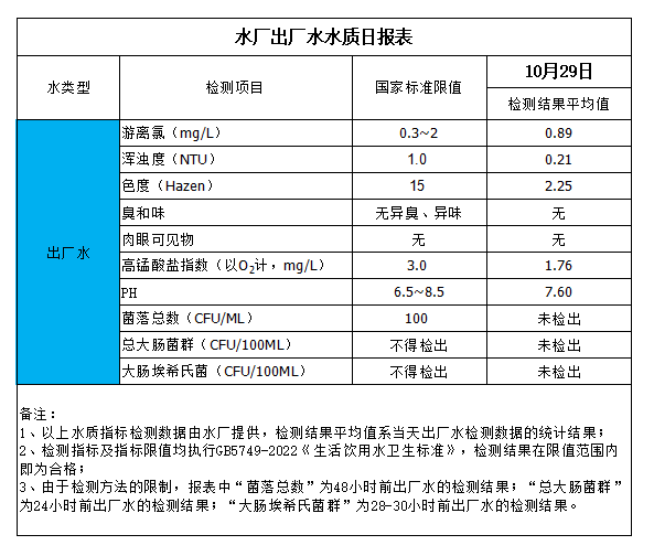 水廠出廠水水質日報表(2023-10-29)