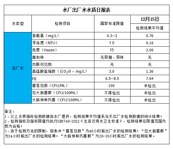 水廠出廠水水質日報表(2023-12-15)