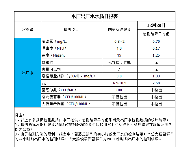 水廠出廠水水質(zhì)日?qǐng)?bào)表(2023-12-28)