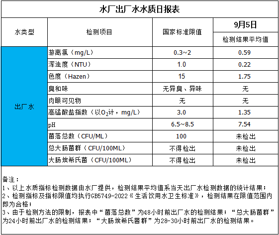 水廠出廠水水質(zhì)日?qǐng)?bào)表(2024-9-5)