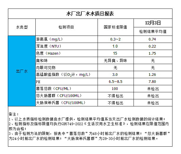 水廠出廠水水質日報表(2024-12-3)